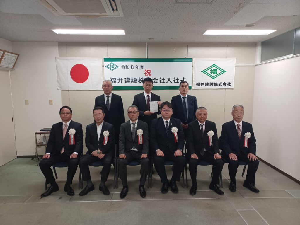 本年度は1名の新入社員を迎え、今後職業訓練法人広島建設アカデミーに入校し、約2か月半の訓練を行います。